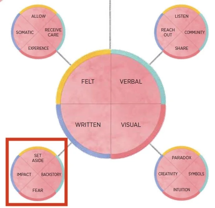 The work is meant to be done with care, support, and moderation. Participants are encouraged to work with a helper, attend group gatherings when possible, and limit sessions to short periods to avoid re-traumatization. Emotional responses are treated with respect, and pacing ourselves is considered a skill, not a failure. Complementary practices, such as the more creative Visual Wheel and physical focus of the Felt Wheel, help balance the mental focus of the Written Wheel. Ultimately, the practice opens the door to change by bringing unconscious patterns into awareness with clarity and compassion. Like tenderizing or detangling something tightly bound, the Written Wheel softens inner resistance, making real change possible in its own time.